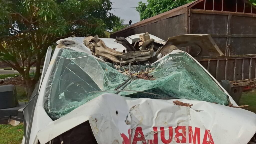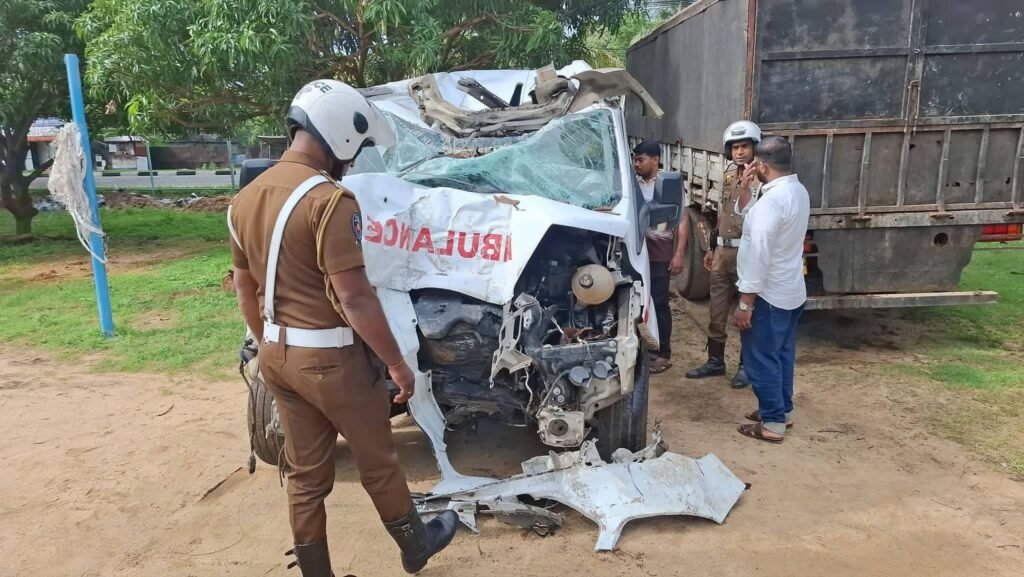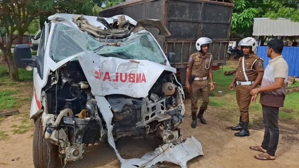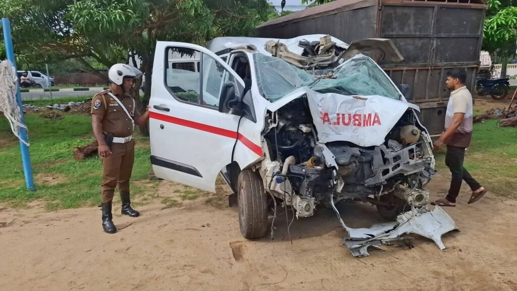 கொழும்பிலிருந்து நிந்தவூர் நோக்கி சென்று கொண்டிருந்த நிந்தவூர் ஆதார வைத்தியசாலைக்கு சொந்தமான குறித்த அம்பியூலன்ஸ் வண்டி பாதையை விட்டு விலகி மின்கம்பத்திலும், அருகில் இருந்த பனைமரத்திலும் மோதியுள்ளது.